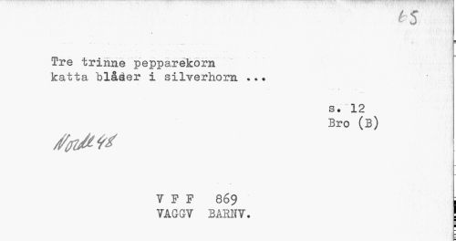 //// 15 //// Tre trinne pepparekorn katta "blåser i silverhorn //// l /' 4 . , //// s. 12 Bro (B) //// 7 P F 869 i //// 7AGG7 BARN7. //// | //// i //// i ////