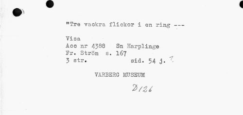 //// "Tre vackra flickor i en ring --- //// Yisa //// Åcc nr 4388 Sn Harplinge Fr. Ström s. 167 3 str» sid. 54 0* - //// VÅRBERG MUSEUM ////