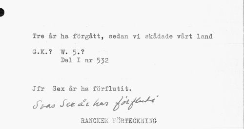 //// I //// Tre år ha förgått, sedan vi skådade vårt land //// G.K.? W. 5.? //// Del I nr 532 //// ¦ j //// Jfr oex år ha förflutit. //// St** //// RABTCKEN FÖRTECKNING ////