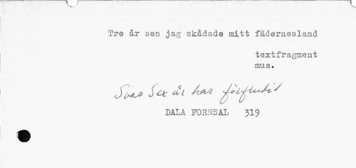 //// <-» . ' . . . . ... . »...-.'• _ Tre år sen jag skådade mitt fädernesland //// textfragment mus. //// Sw> i t* dl Aj*a ML-^A V //// DALA FORNSAL 319 //// m ////