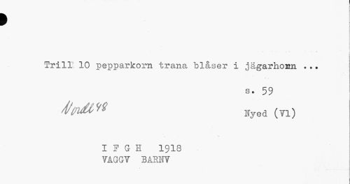//// > //// * //// I //// Trill 10 pepparkorn trana blåser i jägarhonn ... //// s. 59 //// timdlM Kyed (TI) //// I P G H 1918 TAGGT BARIIT ////