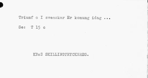 //// p //// t //// Triumf o I svenskar Er konung idag ... //// [ //// Ses T 15 c //// 1 //// | //// > j //// \ //// KBjS skillingtbycksreg. i //// 1 ////