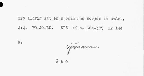//// 9 //// Tro aldrig att en sjöman han sörjer så svårt, //// 4:4. FÖ-JO-LE. SLS 46 s. 384-385 nr I44 //// H # ^ //// YjOyvt ä^vW t //// ÅBO ////
