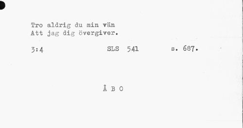 //// Tro aldrig du min vän Att jag dig övergiver. //// | //// 3:4 SLS 541 s. 687. I //// f I //// ÅBO I ////