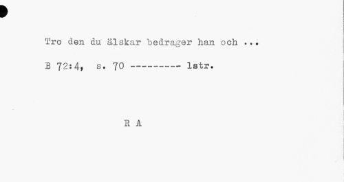 //// f //// : ¦ //// Tro den du älskar bedrager han och ... //// J //// • - • - / 1 //// i //// B 72:4, s. 70---Istr. //// R A ////