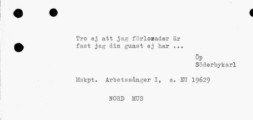 //// Tro ej att jag förlo^ader är fast jag din gunst ej har ... //// öp //// Söderbykarl Mskpt. Arbetssånger I, s. EU 19629 //// HORD MUS ////