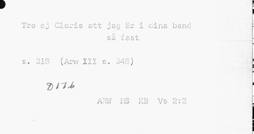 //// r r //// Tro ej Cloris att jag är i dina band b //// ° r . //// Sd IcSt //// s. 313 (Arv/. III s. 348) [ //// | //// T) HM //// KM MS KB Vs 2:2 j ////
