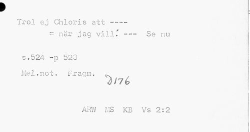 //// f //// Trol ej Chloris att --- //// = när jag vill.'--- Se nu //// s.524 -p 523 Me 1. n o t. F r a q m. //// dJ7é //// ARW MS KB Vs 2:2 ////