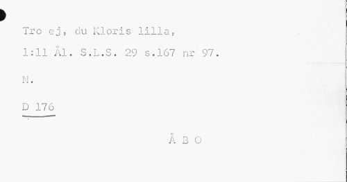 //// to //// Tro ej, ciu Kloris lilla, 1:11 Ål. S.L.S. 29 s.167 nr 97. //// N. //// D 176 //// ÅBO ////