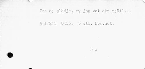 //// Tro ej glädje, ty jag vet ett tjall... A 172:; 3 Otro. 3 str. kom.not. //// D A //// i l A ////