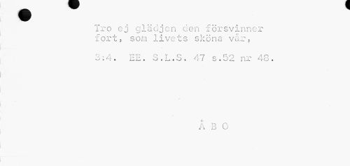 //// Tro ej glädjen den försvinner //// fort, som livets skona vår, //// ...%, , i //// 3:4. EE. 3.L.S. 47 s.52 nr 48. //// Å B O ////