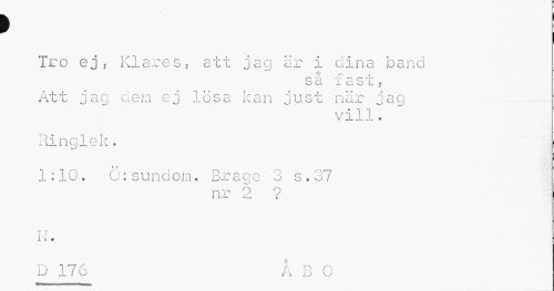 //// to //// Tro ej, Klares, att jag är i dina band //// ? r » //// sa xasx, //// Att jag dem ej lösa kan just när jag //// vill. //// riinglek. //// r * //// 1:10 . O: sundoin. Br age 3 s . 37 //// nr 2 ? //// N. //// D 176 Å B O ////