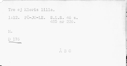 //// Tro ej Kloris lilla, //// 1:12. FÖ-JO-LE. S.L.S. 46 s. //// 485 nr 226. //// N. //// D 176 //// A B O ////