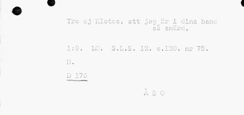 //// Tro ej Klotes, att jag är i dina band //// ""o . . , //// sa snarcl. //// 1 i 9 . LO. S . L. S . 12. //// 75. //// N. //// D 176 //// C //// A B O ////