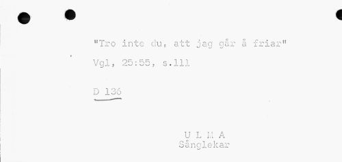 //// "Tro inte du, att jag går å friar" Vgl, 25:55, s.lll //// D 136 //// U L M- A Sånalekar ////