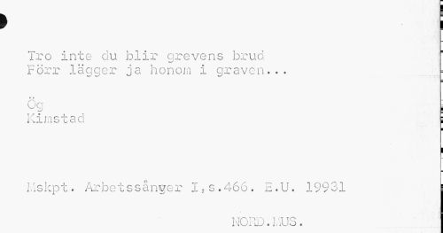 //// > //// Tro inte du blir grevens brud //// Förr lägger ja honom i graven... ... = //// ög i //// Kimstad i //// ¦ //// i //// Llskpt. Arbetssånver I.s.466. E.U. 19931 //// NGrD ® iviUO e ////