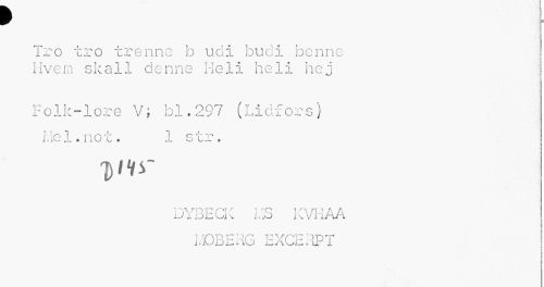 //// 9 //// r-, t r t 1 -J • 1 c 1 //// iro tro xrenne b ugi buo.i Denne Hvem skall denne Heli heli hej //// Folk-lore V; bl.297 (Lidfors) Mel.not. 1 str. //// D/yr //// rr\ t r^s ? rr* vt n t a a //// uybh u -v i> ib k v haa //// Dn IT v > r^ T**4 //^-p * T* il)nIVO AL/IIiU^ i ////
