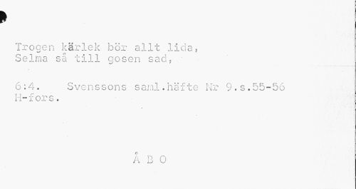 //// > //// Trooen kärlek bör. allt lida, Selma sa till gösen sad, //// 6:4. Svenssons saml.häfte Nr 9.s.55-56 II-fors. //// Å B O ////
