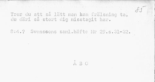 //// . ... ¦ //// Tror du att sa latt man kan.frälsning t ai //// w* * //// du däri så stort dig misstagit har. //// 8:4.? Svenssons saml.häfte Nr 29.s.31-32. //// ä //// ÅBO ////