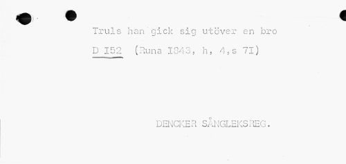 //// iruls han"gick sig utöver en bro D 152 (Runa 1843, h, 4,s 71) //// DENCKER SÅNGLEKSREG. ////