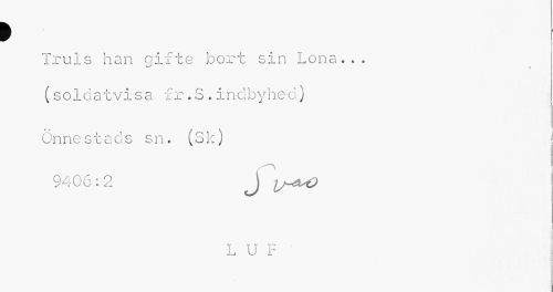 //// > //// Truls han gifte bort sin Lona... //// ^ « //// (soldatvisa fr.3.incbyhed) Unnesta ds s n. (3 k) //// 9406 : 2 ^J [/^O //// T T T T"1 //// «li v-.^ 1 ////
