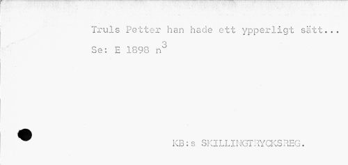 //// Truls Petter han hade ett ypperligt satt... Se: E 1898 n3 //// KB:s SKILLINGT RYCKS REG. ////