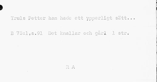 //// > I //// Truls Petter han hade ett ypperligt sätt.,. B 73:1,s.91 Det knallar och gårl 1 str. //// R A ////