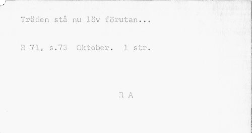 //// Traden stå nu löv förutan... B 71. s.73 Oktober. 1 str. //// R A ////