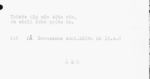 //// I //// Trösta dig min söta vän, du skall icke cråta än, //// W.' * //// c* //// 6;8 PA Svenssons saml.häfte Nr 19.s.8 //// ¦ //// i ¦ //// i //// o //// [¦¦ r) r\ //// H .d U ////