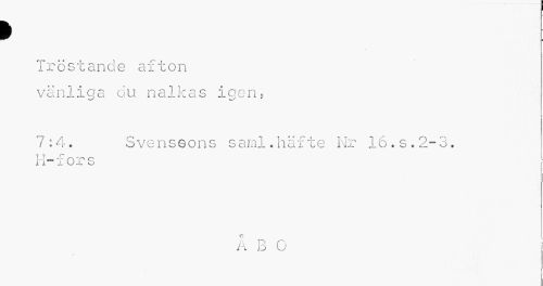 //// > //// Tröstande afton vänliga du nalkas igen? //// 7:4. Svenssons sanu.häfte Nr 16.s.2-3. //// H-fors //// 0 //// 1 p n //// /•i L» u ////