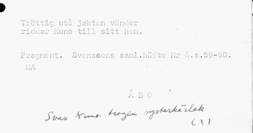 //// f //// m //// Tr ö 11 i c u t å j a k t e n v ä n cl e r ridclar Kuno till sitt hem, //// Fragment. Svenssons saml.häfte Nr 6.s.59-60. //// t t A //// iM J i //// ö i //// t ¦ "O c \ //// 1\ ö U //// *w , ////