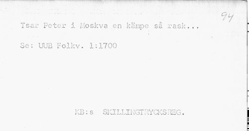 //// ... D fy //// . Tsar Peter i Moskva en kämpe så rask... Se: UUB Folkv. 1:1700 //// KB:s SKlLLINGTRYCKSR£G. j ////