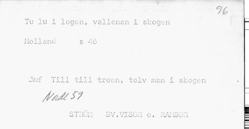 //// Tu lu i logen, valleman i skogen ; ..i- //// Holland s 46 //// f //// Jmf Till till troen, tolv man I skogen //// CTDfil? C \J V/TCfp r. 'O A 'fC ("")...) ¦ //// o 1 ilU.i ^ V . V' j- OUii O • * J \i - lO U - L = ////