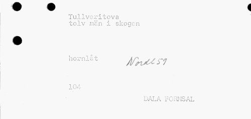 //// Tullveritova //// tolv man i skogen //// k-/ //// hornlåt Afouri //// 104 //// DALA 0 01U IS AL ////