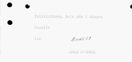 //// • * i //// Tullviritova5 tolv män i skogen //// hornlåt //// n6 sfrswt/y? //// DALA FORNSAL ////