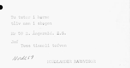 //// > //// Tu tutor i ii9rne tålv man I skogen //// o //// Nr '59 B. Angermld. E. S. //// < //// t r* //// jmx //// Tuss timmeli to£ven //// NORDLANDER BARNVISOR ////