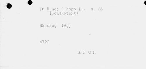 //// m //// Tu å hoj ä hopp I.. s. 06 (polsketext) //// Eke skog (Vg) 4722 //// 1 F G H ////