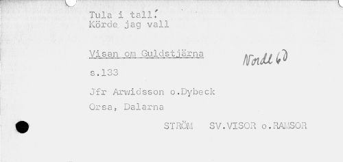 //// /y //// Tul Q 1 lS 11. //// Körde, jag vall //// Visan om Guldstjärna ^^jj^ ^^ //// S . 1 o o //// Jfr Arwidsson o.Dybeck Grsa, Dalarna //// ^ STRÖM SV.VISOR o.RAMSOR //// % —.A ////