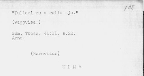 //// "Tulleri ru o rulle sju." (vaggvisa.) //// Sdm. Trosa, 41:11, s.22. Arne. //// (Barnvisor) //// U L M A ////