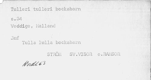 //// Tulleri tulleri bockahorn s. 34 //// Veddige, Halland //// Jm£ //// Tulla lulla bockahorn //// STRÖM SV. VISOR o . RAMSOR ////