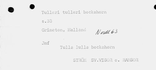 //// • # i //// ¦ //// f Tulleri tulleri bockahorn //// s. //// Gr i me ton, Halland j/ //// Jmf //// Tulla lulla bockahorn //// STRÖM SV.VISOR o. RAMSOR ////