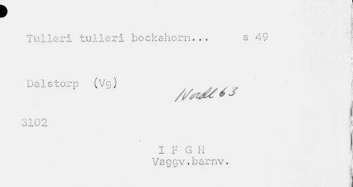 //// f //// Tulleri tulleri bockahorn... s 49 [ //// i //// r //// j //// i //// Dalstorp (Vg) //// /(/^éJ //// 3102 1 //// I F G Ii ^ //// Vagqv.barnv. ////
