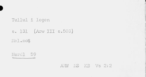 //// > //// Tullul i logen //// s. 131 (Arw III s.503) //// Me 1. noef //// Nordl 59 //// . i — //// ARW MS KB Vs 2:2 ////