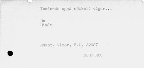 //// Tumlande uppå mörkblå vågor... Ha //// Himle //// Mskpt. Visor, E.U. 32087 W NORD.MUS. ////
