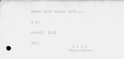 //// Tumme tott slieke pott... s 10 //// Hemsjö (Vg) //// / //// 2081 //// ^^ Vaggv.barnv. ////