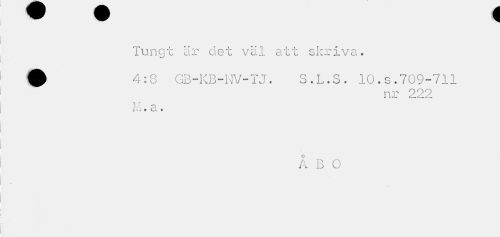 //// Tungt är det väl att skriva. //// ^ 4:3 GB-KB-NV-TJ. S.L.S. .10 . s . 709-711 //// nr 222 //// T\Ä O //// i - i • CA • //// ÅBO ////