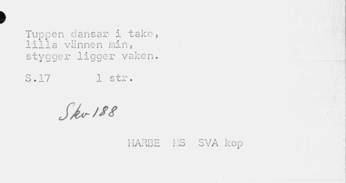 //// ? //// Tuppen dansar i take, lilla vännen min, stygger ligger vaken. //// S.17 1 str. //// Så»- //// Ii ARBE I.iS SVA lcop //// i ////