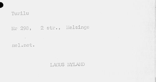 //// w //// Turilu //// Nr 298, 2 str., Helsinge mel.not. //// LAGUS NYLAND ////