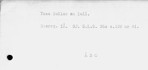//// - //// ¦ ' • //// .. .. //// Tuss lullar an luli, //// 3:oreg. IÅ. SJ. S.L.S. 26a s.339 nr 41. //// i ////