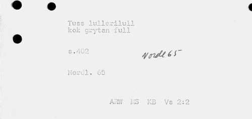 //// w v f //// Tuss lullerilull kok grytan full //// Nordl. 65 //// ARW KS KB Vs 2:2 ////